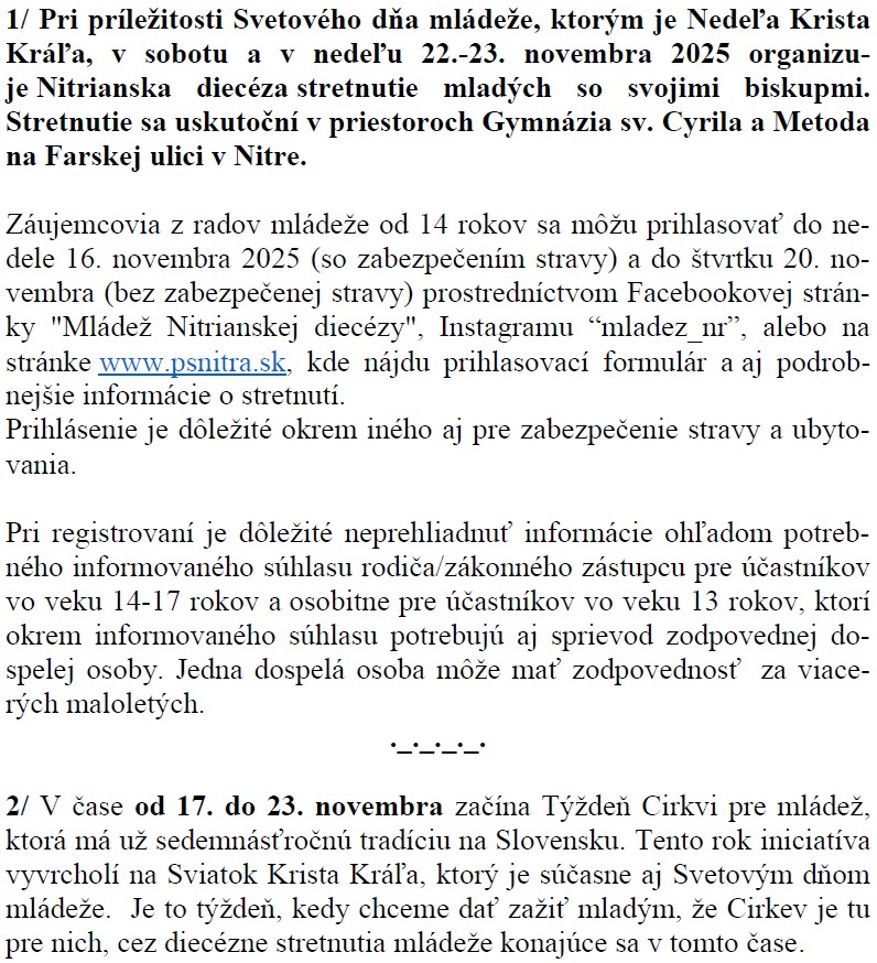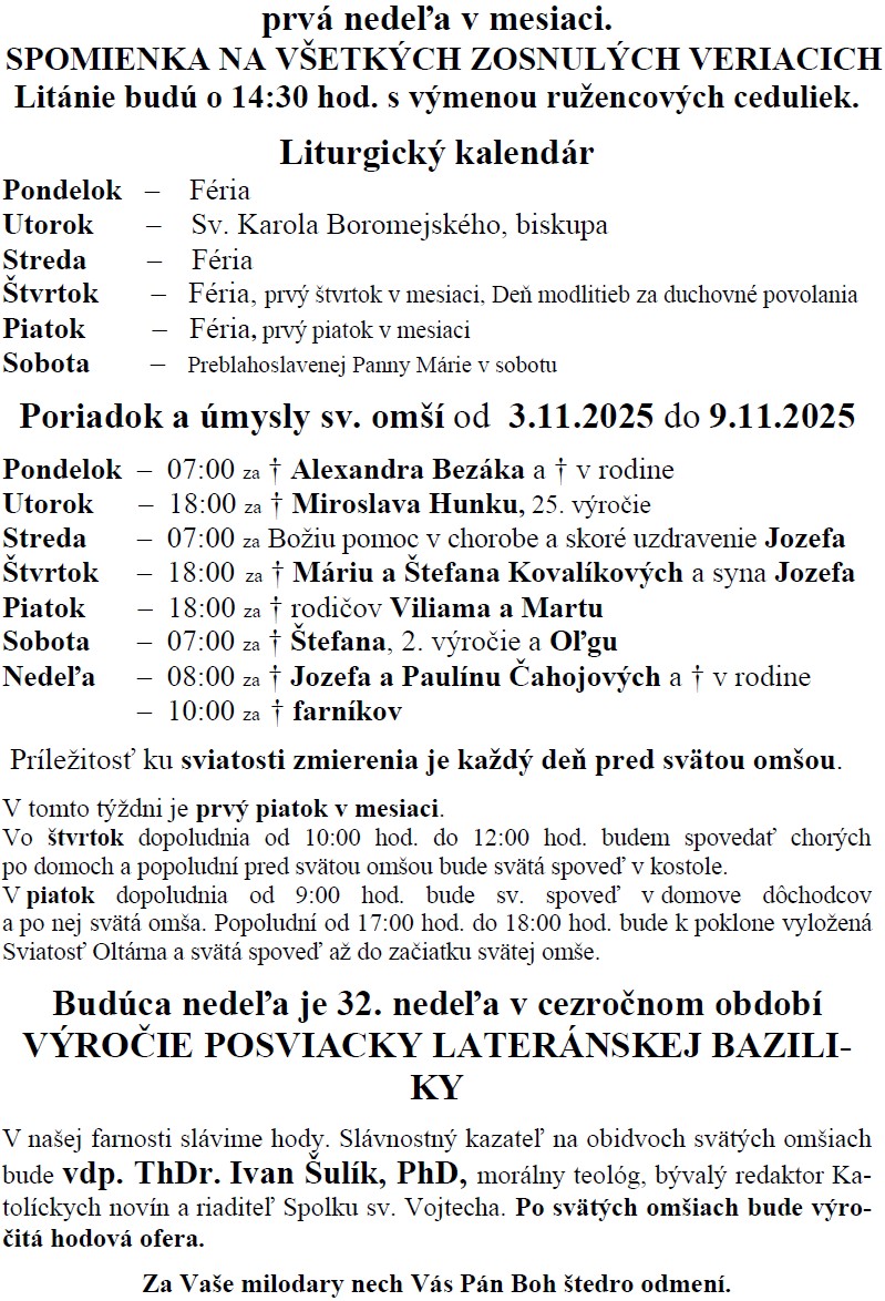 Rozvrh čítania lekcií a prosieb: od 12. októbra do 29. decembra 2025