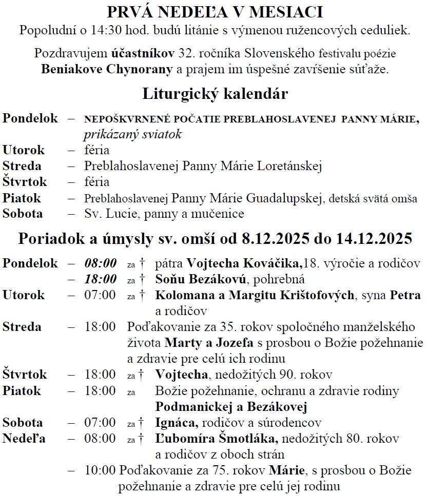 Publikované 7. decembra 20257. decembra 2025Autor chynoranyKategórie Farské oznamy