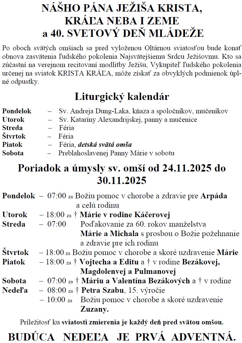Rozvrh čítania lekcií a prosieb: od 12. októbra do 29. decembra 2025